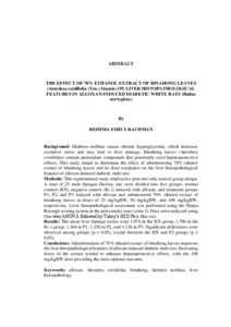 REIMMA EMILY, RACHMAN (2026) PENGARUH PEMBERIAN EKSTRAK ETANOL 70% DAUN BINAHONG (Anredera cordifolia (Ten.) Steenis) TERHADAP GAMBARAN HISTOPATOLOGI HEPAR PADA TIKUS PUTIH (Rattus norvegicus) MODEL DIABETES MELITUS YANG DIINDUKSI ALOKSAN. FAKULTAS KEDOKTERAN, UNIVERSITAS LAMPUNG.