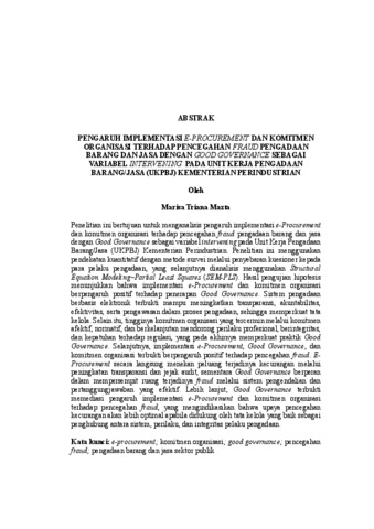 PENGARUH IMPLEMENTASI E-PROCUREMENT DAN KOMITMEN ORGANISASI TERHADAP PENCEGAHAN FRAUD PENGADAAN BARANG DAN JASA DENGAN GOOD GOVERNANCE SEBAGAI VARIABEL INTERVENING PADA UNIT KERJA PENGADAAN BARANG/JASA (UKPBJ) KEMENTERIAN PERINDUSTRIAN