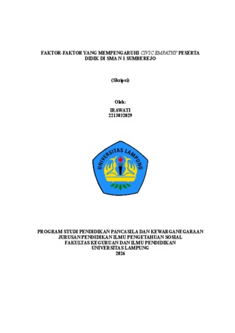 IRAWATI , - (2026) FAKTOR-FAKTOR YANG MEMPENGARUHI CIVIC EMPATHY PESERTA DIDIK DI SMA N 1 SUMBEREJO. FAKULTAS KEGURUAN DAN ILMU PENDIDIKAN, UNIVERSITAS LAMPUNG.