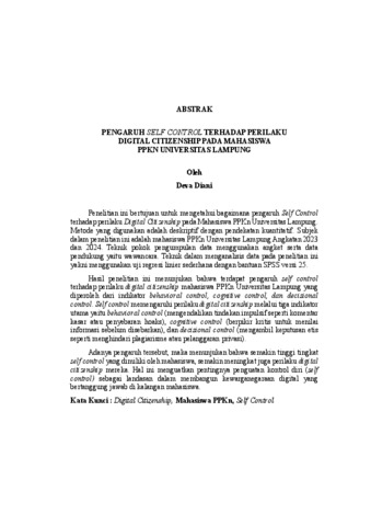 Deva , Diani (2026) PENGARUH SELF CONTROL TERHADAP PERILAKU DIGITAL CITIZENSHIP PADA MAHASISWA PPKN UNIVERSITAS LAMPUNG. FAKULTAS KEGURUAN DAN ILMU PENDIDIKAN, UNIVERSITAS LAMPUNG.