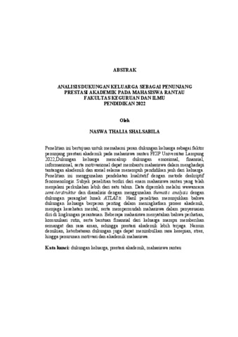 NASWA , THALIA SHALSABILA (2024) ANALISIS DUKUNGAN KELUARGA SEBAGAI PENUNJANG PRESTASI AKADEMIK PADA MAHASISWA RANTAU FAKULTAS KEGURUAN DAN ILMU PENDIDIKAN 2022. FAKULTAS KEGURUAN DAN ILMU PENDIDIKAN, UNIVERSITAS LAMPUNG.