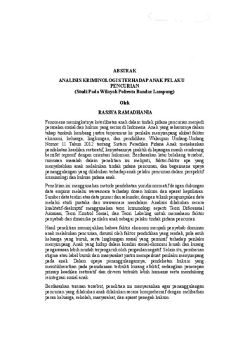 RASSYA , RAMADHANIA (2026) ANALISIS KRIMINOLOGIS TERHADAP ANAK PELAKU PENCURIAN (Studi Pada Wilayah Polresta Bandar Lampung). FAKULTAS HUKUM, UNIVERSITAS LAMPUNG.