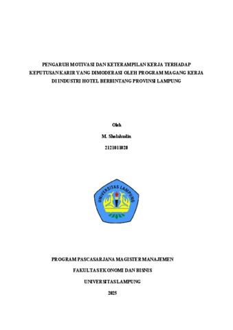 M. Sholahudin, (2025) PENGARUH MOTIVASI DAN KETERAMPILAN KERJA TERHADAP KEPUTUSAN KARIR YANG DIMODERASI OLEH PROGRAM MAGANG KERJA DI INDUSTRI HOTEL BERBINTANG PROVINSI LAMPUNG. Masters thesis, UNIVERSITAS LAMPUNG.