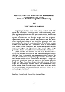 Pengembangan kawasan sentra keripik sebagai destinasi wisata tidak semata-mata mengandalkan keberadaan produk keripik yang beragam. Faktorfaktor lain juga perlu diperhatikan, salah satunya adalah karakter visual kawasan tersebut. Penguatan karakter mengacu pada kemampuan suatu kawasan untuk dipahami, diinterpretasikan, dan dinavigasi dengan mudah oleh pengunjung. Dalam konteks destinasi wisata, Penguatan karakter memiliki peran yang penting dalam menarik minat wisatawan dan memastikan pengalaman wisata yang menyenangkan. Kawasan sentra keripik yang terkenal di Kota Bandar Lampung berada di koridor jalan Pagar Alam. Kawasan sentra keripik ini memiliki potensi untuk menjadi destinasi wisata kuliner yang menarik baik bagi wisatawan lokal maupun mancanegara yang diproyeksikan dapat menjadi trigger sebagai pertumbuhan ekonomi kawasan lokal melalui wisata kuliner dan wisata belanja. Metode penelitian yang digunakan ialah SWOT dan Appreciative Inqury (AI) dengan memetakan potensi-potensi yang ada pada kawasan sentra keripik jalan Pagar Alam. Metode analisis data menggunakan deskriptif kuantitatif dan deskriptif kualitatif. Elemen rancang kota yang diidentifikasi dan analisis yaitu: figure ground, lingkage, land use, pathways, nodes dan landmark. Kelima elemen rancang kota tersebut dapat memperkuat karakter dan citra kawasan pada sentra keripik jalan Pagar Alam sebagai destinasi wisata jika terencana dan tertata dengan baik. Pengembangan penguatan karakter pusat kawasan sentra keripik sebagai destinasi wisata dilakukan dengan konsep wisata 4A+I yaitu: atraksi (attraction), aksesbilitas (accessibility), amenitas (amenities), ancillary service dan kelembagaan (institutions) Kata Kunci : Sentra Keripik, Rancang Kota, Destinasi Wisata. The development of the chips production hub area as a tourist destination does not solely rely on the diversity of chip products. Other factors must also be considered, one of which is the visual character of the area. Character strengthening refers to the ability of an area to be easily understood, interpreted, and navigated by visitors. In the context of tourism, character enhancement plays a vital role in attracting tourists and ensuring a pleasant travel experience. The chips production hub area, well-known in Bandar Lampung, is located along the Pagar Alam street corridor. This area holds great potential to become an attractive culinary tourism destination for both local and international visitors and is projected to act as a catalyst for local economic growth through culinary and shopping tourism.. The research methods used are SWOT and Appreciative Inquiry (AI), by mapping the existing potentials of the chips production hub area on Pagar Alam Street. Data analysis was carried out using both quantitative and qualitative descriptive methods. The urban design elements identified and analyzed include: figure-ground, linkage, land use, pathways, nodes, and landmarks. These five urban design elements can strengthen the character and image of the chips production hub area as a tourist destination if well-planned and well-organized. The development of character strengthening for this central hub as a tourist destination is carried out using the 4A+I tourism concept, which includes: attractions, accessibility, amenities, ancillary services, and institutions. Keyword: Chips Production Hub, Urban Design, Tourist Destination..