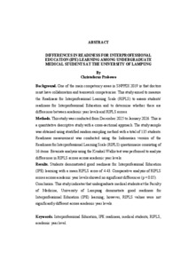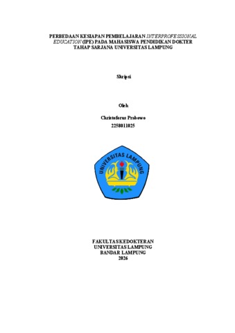 Christoforus, Prabowo (2026) PERBEDAAN KESIAPAN PEMBELAJARAN INTERPROFESSIONAL EDUCATION (IPE) PADA MAHASISWA PENDIDIKAN DOKTER TAHAP SARJANA UNIVERSITAS LAMPUNG. FAKULTAS KEDOKTERAN, UNIVERSITAS LAMPUNG.