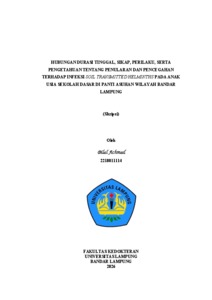 Bilal, Achmad (2026) HUBUNGAN DURASI TINGGAL, SIKAP, PERILAKU, SERTA PENGETAHUAN TENTANG PENULARAN DAN PENCEGAHAN TERHADAP INFEKSI SOIL TRANSMITTED HELMINTHS PADA ANAK USIA SEKOLAH DASAR DI PANTI ASUHAN WILAYAH BANDAR LAMPUNG. FAKULTAS KEDOKTERAN, UNIVERSITAS LAMPUNG.