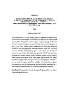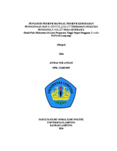 ANNISA, ANNAFI (2026) THE IMPACT OF PERCEIVED USEFULNESS, PERCEIVED EASE OF USE, AND E-SERVICE QUALITY ON E-WALLET USER LOYALTY AMONG GENERATION Z (A Study of Students at Five State Universities Using the DANA E-Wallet in Lampung. FAKULTAS ILMU SOSIAL DAN ILMU POLITIK , UNIVERSITAS LAMPUNG.