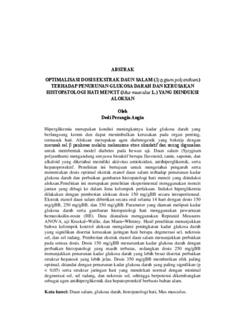 Dedi, Perangin Angin (2026) OPTIMALISASI DOSIS EKSTRAK DAUN SALAM (Syzygium polyanthum) TERHADAP PENURUNAN GLUKOSA DARAH DAN KERUSAKAN HISTOPATOLOGI HATI MENCIT (Mus musculus L.) YANG DIINDUKSI ALOKSAN. FAKULTAS MATEMATIKA DAN ILMU PENGETAHUAN ALAM, UNIVERSITAS LAMPUNG .