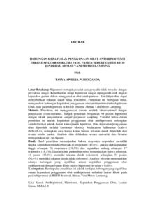 TASYA, APRILIA PUBIOGANDA (2026) HUBUNGAN KEPATUHAN PENGGUNAAN OBAT ANTIHIPERTENSI TERHADAP LUARAN KLINIS PADA PASIEN HIPERTENSI DI RSUD JENDERAL AHMAD YANI METRO LAMPUNG. FAKULTAS KEDOKTERAN, UNIVERSITAS LAMPUNG.