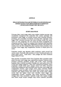 Kekerasan dalam rumah tangga adalah setiap tindakan terhadap seseorang yang menyebabkan kesengsaraan atau penderitaan fisik, seksual, psikologis, atau penelantaran rumah tangga; ini termasuk ancaman untuk melakukan perbuatan, pemaksaan, atau perampasan kemerdekaan seseorang dalam lingkungan rumah tangga KDRT mencakup kekerasan fisik selain kekerasan seksual dan mental, seperti caci maki, penghinaan, dan teror mental jika korban meninggalkan atau melaporkan peristiwa. Penelitian ini mengkaji Peran Kepolisian dalam penyidikan kasus kekerasan rumah tangga yang mengakibatkan kematian yang lakukan istri terhadap suami dan faktor penghambat peran kepolisian dalam penyidikan kasus kekerasan rumah tangga yang mengakibatkan kematian di wilayah polres oku selatan. Pendekatan masalah yang digunakan adalah pendekatan yuridis normatif dan yuridis empiris, Narasumber pada penelitian ini terdiri Penyidik pada polres oku selatan bagian reserse, Kadus dusun 2 desa pendagan dan Dosen Akademisi Bagian Pidana FH Unila. Hasil penelitian menunjukkan bahwa Peran Kepolisian dalam penyidikan tindak pidana kekerasan rumah tangga yang mengakibatkan kematian, Kepolisian dalam perananya melakukan penyidikan mengacu pada KUHP. Terkait wewenang kepolisian dalam melakukan penyidikan terhadap suatu tindak pidana diatur oleh KUHAP dan Undang-Undang No 2 Tahun 2002 Tentang Peran Kepolisian. Faktor penghambat meliputi faktor aparat penegak hukum serta faktor masyarakat menjadi faktor penghambat dalam penyidikan kasus kekerasan rumah tangga yang mengakibatkan kematian, aparat penegak hukum dalam melakukan tindakan penyelidikan maupun penyidikan masih kurang efektif dimana mereka sempat melakukan salah tangkap dimana anak korban yang menjadi pelaku padahal mereka tidak tahu apapun terkait kasus kekerasan rumah tangga yang mengakibatkan kematian. masyarakat yang kurang memberikan keterangan sehingga dalam tahap penyelidikan kepolisian sempat salah tangkap sehingga anak korban sempat menjadi tersangka tetapi setelah melakukan penyidikan kepolisian menetapkan istri korban sebagai tersangka, masyarakat yang hidup dan bergantung pada pertanian membuat mereka tidak mengetahui tentang tindak kekerasan rumah tangga yang mengakibatkan kematian. Saran dalam penelitian ini adalah Kepolisian perlu meningkatkan efektivitas penyidikan melalui penguatan profesionalisme penyidik, penerapan prosedur yang konsisten, serta pelatihan berkelanjutan agar setiap proses penyidikan berlangsung transparan, akuntabel, dan objektif sesuai ketentuan hukum. Penegakan hukum terhadap korban kekerasan dalam rumah tangga perlu dilaksanakan secara adil, tidak diskriminatif, dan tetap berlandaskan penghormatan terhadap hak asasi manusia. masyarakat diharapkan berperan aktif dalam menjaga keamanan lingkungan serta berani melaporkan setiap tindak kekerasan dalam rumah tangga agar kasus dapat segera ditangani dan dapat mencegah terulangnya peristiwa serupa yang sebelumnya menelan korban jiwa. Kata Kunci : Peran Kepolisian, Penyidikan, KDRT Domestic violence is any act committed against a person that causes physical, sexual, psychological suffering, or household neglect; it includes threats to commit such acts, coercion, or the unlawful deprivation of a person’s liberty within the domestic sphere. Domestic violence encompasses not only physical abuse but also sexual and psychological violence, such as verbal abuse, insults, and mental intimidation, particularly when the victim attempts to leave or report the incident. This study examines the role of the police in investigating domestic violence cases resulting in death, specifically cases in which the wife is the perpetrator against the husband, as well as the factors that hinder the police in carrying out investigations of domestic violence cases resulting in death within the jurisdiction of the South OKU Police Resort. The problem approach used in this study consists of a normative juridical approach and an empirical juridical approach. The informants in this research include investigators from the Criminal Investigation Unit of the South OKU Police Resort, the head of Hamlet 2 of Pendagan Village, and an academic lecturer in the field of Criminal Law from the Faculty of Law, University of Lampung. The results of the study indicate that the role of the police in investigating the criminal offense of domestic violence resulting in death is carried out by referring to the Indonesian Criminal Code (KUHP). The authority of the police in conducting investigations of criminal offenses is regulated by the Criminal Procedure Code (KUHAP) and Law Number 2 of 2002 concerning the Indonesian National Police. The inhibiting factors include both law enforcement factors and community factors that hinder the investigation of domestic violence cases resulting in death. In terms of law enforcement, investigative and inquiry actions were not carried out effectively, as there was an incident of wrongful arrest in which the victim’s child was initially suspected as the perpetrator, even though the child had no knowledge or involvement in the domestic violence case resulting in death. From the community perspective, the lack of public willingness to provide information contributed to errors at the investigation stage, leading to the victim’s child being temporarily designated as a suspect. However, after further investigation, the police determined the victim’s wife as the actual suspect. Additionally, the community’s livelihood, which largely depends on agricultural activities, resulted in limited awareness and knowledge regarding incidents of domestic violence resulting in death. The recommendations of this study suggest that the police need to enhance the effectiveness of investigations by strengthening the professionalism of investigators, consistently applying established procedures, and conducting continuous training to ensure that every investigative process is carried out transparently, accountably, and objectively 