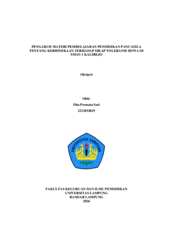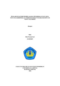 Dita Permata , Sari (2026) PENGARUH MATERI PEMBELAJARAN PENDIDIKAN PANCASILA TENTANG KEBHINEKAAN TERHADAP SIKAP TOLERANSI SISWA DI SMAN 1 KALIREJO. FAKULTAS KEGURUAN DAN ILMU PENDIDIKAN, UNIVERSITAS LAMPUNG.