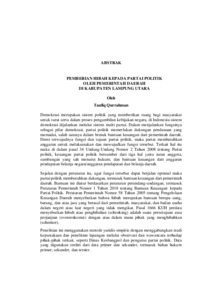 PEMBERIAN HIBAH KEPADA PARTAI POLITIK OLEH PEMERINTAH DAERAH DI KABUPATEN LAMPUNG UTARA