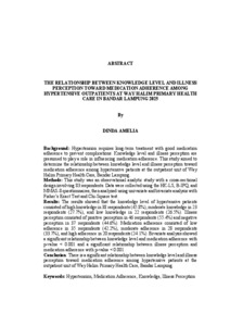 AMELIA, DINDA (2026) HUBUNGAN ANTARA TINGKAT PENGETAHUAN DAN PERSEPSI PENYAKIT TERHADAP KEPATUHAN MINUM OBAT PADA PASIEN HIPERTENSI DI INSTALASI RAWAT JALAN PUSKESMAS WAY HALIM BANDAR LAMPUNG TAHUN 2025. FAKULTAS KEDOKTERAN, UNIVERSITAS LAMPUNG.