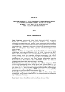 Latar Belakang: Implementasi Rekam Medis Elektronik (RME) merupakan bagian dari transformasi digital pelayanan kesehatan yang bertujuan meningkatkan efisiensi dan mutu layanan. Namun, penggunaan RME berpotensi menambah beban kerja administratif dokter dan memengaruhi risiko burnout. Di rumah sakit tipe C Kabupaten Pesawaran, evaluasi terkait kepuasan penggunaan RME serta hubungannya dengan beban kerja dan risiko burnout pada dokter masih terbatas. Metode: Penelitian ini menggunakan desain kuantitatif cross-sectional yang dilaksanakan pada Oktober–Desember 2025 di RSUD Pesawaran dan RSU Gladish Medical Center Pesawaran. Sampel penelitian melibatkan 64 dokter yang diambil dengan teknik total sampling. Kepuasan penggunaan RME diukur menggunakan kuesioner End User Computing Satisfaction(EUCS), beban kerja menggunakan RAW NASA-TLX, dan risiko burnout menggunakan Maslach Burnout Inventory Human Services Survei (MBI-HSS). Analisis data dilakukan secara univariat dan bivariat menggunakan uji Chi-Square. Hasil: Sebagian besar responden menyatakan puas terhadap penggunaan RME (65,6%). Beban kerja dokter paling banyak berada pada kategori sedang (39,1%) dan berat (37,5%). Risiko burnout mayoritas berada pada kategori ringan (65,6%) dan sedang (34,4%). Analisis bivariat menunjukkan tidak terdapat hubungan yang bermakna antara kepuasan penggunaan RME dengan risiko burnout (p=0,177) maupun antara beban kerja dengan risiko burnout (p=0,374). Kesimpulan: Tingkat kepuasan penggunaan RME dan beban kerja tidak berhubungan secara signifikan dengan risiko burnout pada dokter di rumah sakit tipe C Kabupaten Pesawaran. Kata Kunci: Rekam Medis Elektronik, Beban Kerja, Burnout, Dokter Background: The implementation of Electronic Medical Records (EMR) is part of the digital transformation of healthcare services aimed at improving efficiency and quality of care. However, in practice, EMR use may increase physicians‘ administrative workload and potentially contribute to burnout. Type C hospitals in Pesawaran Regency have implemented EMR, yet evaluations of user satisfaction and its association with workload and burnout risk among physicians remain limited. Methods: This quantitative cross-sectional study was conducted from October to December 2025 at RSUD Pesawaran and RSU Gladish Medical Center Pesawaran. A total of 64 physicians were included using total sampling. EMR satisfaction was assessed using the End User Computing Satisfaction (EUCS) questionnaire, workload was measured using the RAW NASA-TLX, and burnout risk was evaluated using the Maslach Burnout Inventory–Human Services Survey (MBI-HSS). Data were analyzed using univariate and bivariate analyses with the Chi-square test. Results: Most respondents reported being satisfied with EMR use (65.6%). The majority of physicians experienced moderate (39.1%) to high (37.5%) workload. Burnout risk was predominantly categorized as mild (65.6%) and moderate (34.4%), with no cases of severe burnout identified. Bivariate analysis showed no significant association between EMR satisfaction and burnout risk (p=0.177), nor between workload and burnout risk (p=0.374). Conclusions: : EMR satisfaction and workload were not significantly associated with burnout risk among physicians in Type C hospitals in Pesawaran Regency. Keywords: Electronic Medical Records, Workload, Burnout, Physicians