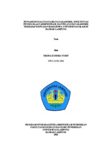 Trisna Kusuma, Yusuf (2026) PENGARUH KUALITAS FASILITAS AKADEMIK, EFEKTIVITAS PENGELOLAAN ADMINISTRASI, DAN PELAYANAN AKADEMIK TERHADAP KEPUASAN MAHASISWA UNIVERSITAS ISLAM DI BANDAR LAMPUNG. Masters thesis, UNIVERSITAS LAMPUNG.