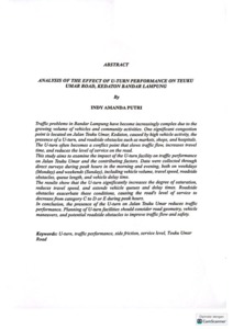 INDY , AMANDA PUTRI (2025) ANALISIS PENGARUH KINERJA U-TURN TERHADAP RUAS JALAN TEUKU UMAR KEDATON, BANDAR LAMPUNG. FAKULTAS TEKNIK, UNIVERSITAS LAMPUNG.