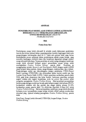 FATMA, IRMA SARI (2026) PENGEMBANGAN MODUL AJAR ENERGI LISTRIK ALTERNATIF BERBASIS PROJECT PEMANFAATAN AMPAS KELAPA UNTUK MENINGKATKAN CREATIVE PROBLEM SOLVING. Masters thesis, UNIVERSITAS LAMPUNG.