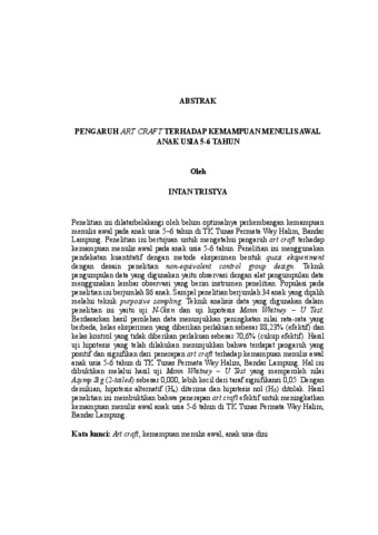 Intan, Tristya (2025) Pengaruh Art Craft Terhadap Kemampuan Menulis Awal Anak Usia 5-6 Tahun. FAKULTAS KEGURUAN DAN ILMU PENDIDIKAN , UNIVERSITAS LAMPUNG.