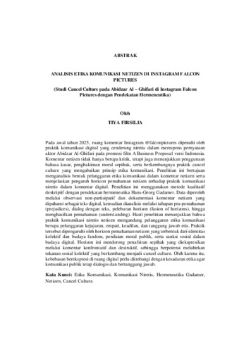ANALISIS ETIKA KOMUNIKASI NETIZEN DI INSTAGRAM FALCON PICTURES (Studi Cancel Culture pada Abidzar Al – Ghifari di Instagram Falcon Pictures dengan Pendekatan Hermeneutika)
