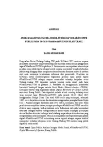 Pengesahan Revisi Undang-Undang TNI pada 20 Maret 2025 memicu respons penolakan masyarakat yang berkembang luas di media sosial melalui penggunaan tagar #TolakRevisiUUTNI di platform X. Fenomena ini menunjukkan terbentuknya gerakan opini publik digital sebagai bentuk respons masyarakat terhadap kebijakan publik yang dianggap dapat mengancam demokrasi dan dominasi militer di institusi sipil serta minimnya keterbukaan informasi dari pemerintah. Penelitian ini bertujuan untuk mendeskripsikan bagaimana gerakan opini publik digital #TolakRevisiUUTNI sebagai respons masyarakat terhadap kebijakan revisi Undang-Undang TNI dimediasi melalui jejaring media sosial pada tagar #TolakRevisiUUTNI di platform X. Penelitian ini menggunakan pendekatan kuantitatif deskriptif dengan metode Social Media Network Analysis (SMNA). Kerangka teoretis yang digunakan adalah Digital Movement of Opinion (DMO) serta teori Ruang Publik. Data diperoleh melalui teknik crawling terhadap tweet yang memuat tagar #TolakRevisiUUTNI pada periode 20–27 Maret 2025 menggunakan Google Colab. Dari total 4.098 tweet yang terkumpul, sebanyak 3.895 tweet dinyatakan relevan dan dianalisis menggunakan perangkat lunak Gephi 0.10.1. Analisis jaringan dilakukan pada level sistem, kelompok, dan aktor. Hasil penelitian menunjukkan bahwa jaringan percakapan #TolakRevisiUUTNI memiliki struktur yang renggang, terdesentralisasi, serta didominasi oleh pola komunikasi satu arah. Jaringan tersebut terfragmentasi ke dalam banyak kelompok percakapan dan melibatkan aktor dari berbagai latar belakang tanpa adanya aktor dominan yang mengendalikan arus komunikasi. Pola ini menunjukkan bahwa gerakan opini publik digital #TolakRevisiUUTNI berkembang secara organik sebagai respons kolektif masyarakat terhadap kebijakan revisi Undang-Undang TNI melalui ruang publik digital di media sosial. Kata kunci: Opini Publik, Analisis Jaringan Media Sosial, #TolakRevisiUUTNI, Digital Movement of Opinion, Ruang Publik. The ratification of the revised TNI Law on March 20, 2025, triggered widespread public opposition on social media through the use of the hashtag #TolakRevisiUUTNI on the X platform. This phenomenon shows the formation of a digital public opinion movement as a form of public response to public policies that are considered to threaten democracy and military domination in civilian institutions, as well as the lack of information transparency from the government. This study aims to describe how the #TolakRevisiUUTNI digital public opinion movement, as a public response to the TNI Law revision policy, is mediated through social media networks on the hashtag #TolakRevisiUUTNI on the X platform. This study uses a descriptive quantitative approach with the Social Media Network Analysis (SMNA) method. The theoretical framework used is the Digital Movement of Opinion (DMO) and Public Sphere theory. Data was obtained through crawling techniques on tweets containing the hashtag #TolakRevisiUUTNI during the period of March 20-27, 2025, using Google Colab. Of the total 4,098 tweets collected, 3,895 tweets were deemed relevant and analyzed using Gephi 0.10.1 software. Network analysis was conducted at the system, group, and actor levels. The results showed that the #TolakRevisiUUTNI conversation network had a loose, decentralized structure and was dominated by one-way communication patterns. The network is fragmented into many conversation groups and involves actors from various backgrounds without any dominant actors controlling the flow of communication. This pattern shows that the #TolakRevisiUUTNI digital public opinion movement developed organically as a collective response from the public to the policy of revising the TNI Law through digital public spaces on social media. Keywords: Public Opinion, Social Media Network Analysis, #TolakRevisiUUTNI, Digital Movement of Opinion, Public Sphere.
