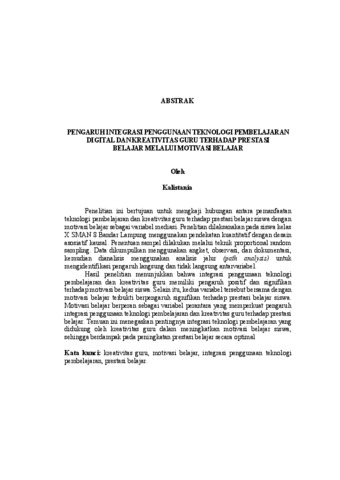 Kalistania , Kalistania (2026) PENGARUH INTEGRASI PENGGUNAAN TEKNOLOGI PEMBELAJARAN DIGITAL DAN KREATIVITAS GURU TERHADAP PRESTASI BELAJAR MELALUI MOTIVASI BELAJAR. FAKULTAS KEGURUAN DAN ILMU PENDIDIKAN, UNIVERSITAS LAMPUNG.