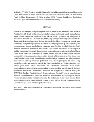 Yasinta, Mahendra (2026) STRUKTUR ANALITIK-SINTETIK BERBASIS HUMANISTIK BERBANTUAN MULTIMEDIA UNTUK MENINGKATKAN MINAT BELAJAR SISWA SEKOLAH DASAR. [Disertasi]