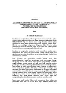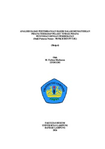 Penelit ian ini mengkaji dasar pertimbangan hakim dalam menjatuhkan pidana terhadap pelaku tindak pidana pencurian dengan pemberatan pada Putusan Nomor 98/Pid.B/2025/PN Tjk. Isu hukum utama yang dianalisis adalah apakah pertimbangan hakim dalam putusan tersebut telah memenuhi standar yuridis, filosofis, dan sosiologis sebagaimana ditegaskan dalam literatur hukum pertimbangan hakim dan ketentuan Pasal 197 KUHAP, serta apakah putusan tersebut telah mencerminkan prinsip keadilan substantif. Penelit ian ini menggunakan pendekatan yuridis normat if dan yuridis empiris menggunakan data primer dan data sekunder, dimana masing-masing data diperoleh dari penelit ian kepustakaan dan penelit ian lapangan. Analisis data dilakukan secara kualitat if. Hasil penelit ian dan pembahasan diketahui bahwa hakim telah mempert imbangkan 3 aspek yaitu: pertimbangan yuridis sesuai dengan Undangudang yang berlaku serta relevan dengan perkara yang dihadapi dibuktikan dengan dakwaan, tuntutan pidana, serta alat bukti yang dihadirkan didalam persidangan. Kemudian pertimbangan filosofis Hakim mempertimbangkan dalam kasus putusan ini pidana yang dijatuhkan kepada Terdakwa merupakan upaya untuk memperbaiki perilaku. Selanjutnya pertimbangan sosiologis yang diterapkan oleh Majelis Hakim dalam kasus putusan ini mengingat kepentingan masyarakat dan saksi selaku korban dari pencurian yang dilakukan oleh para terdakwa, meskipun secara formal putusan tersebut telah sesuai dengan hukum yang berlaku, namun secara substant if belum terpenuhi. Keadilan yang sebenarnya t idak hanya tentang memenuhi unsur hukum, tetapi juga mempert imbangkan nilai-nilai kemanusiaan, moral, dan pemulihan sosial. Saran secara aspek yuridis Hakim perlu memperkuat dasar hukum dan pembuktian unsur Pasal 363 KUHP, secara aspek filosofis putusan wajib mencerminkan keadilan substant if dengan menyeimbangkan aspek pembalasan, kemanfaatan, dan kemanusiaan, secara aspek sosiologis pemidanaan hendaknya mempert imbangkan kondisi sosial terdakwa dan dampak bagi korban serta masyarakat. Kata Kunci: Pertimbangan Hakim; Putusan; Pencurian Pemberatan This study examines the basis for the judge's consideration in imposing criminal penalt ies on perpetrators of aggravated theft in Decision Number 98/Pid.B/2025/PN Tjk. The main legal issue analyzed is whether the judge's considerations in the decision meet the legal, philosophical, and sociological standards emphasized in the legal literature on judicial considerations and the provisions of Art icle 197 of the Criminal Procedure Code, and whether the decision reflects the principle of substantive just ice. This study employs a normat ive legal and empirical legal approach, utilizing primary and secondary data obtained through literature review and field research. The data analysis is conducted qualitat ively. The results of the research and discussion indicate that the judge considered three aspects: legal considerations in accordance wit h applicable laws relevant to the case, as evidenced by the charges, criminal demands, and evidence presented at trial; philosophical considerat ions, wherein the judge viewed the punishment as an effort to reform the defendant's behavior; and sociological considerat ions, where the Panel of Judges considered the interests of the communit y and the vict ims of the theft. Although the verdict formally complied with applicable law, it did not substant ively fulfill just ice. True just ice encompasses not only fulfilling legal elements but also considering human values, morals, and social restoration. Recommendat ions: From a legal perspective, judges should strengthen the legal basis and evidence for Article 363 of the Criminal Code. Philosophically, verdicts should reflect substantive just ice by balancing retribution, benefit, and humanit y. Sociologically, punishment should consider the defendants' social condit ions and the impact on victims and society. Keywords: Judicial Considerations; Judgment; Aggravated Theft