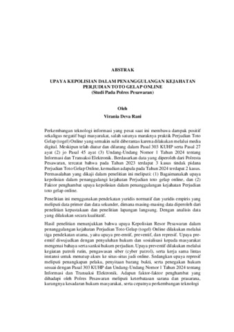 Virania , Deva Rani (2026) UPAYA KEPOLISIAN DALAM PENANGGULANGAN KEJAHATAN PERJUDIAN TOTO GELAP ONLINE (Studi Pada Polres Pesawaran). FAKULTAS HUKUM , UNIVERSITAS LAMPUNG.