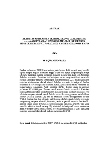 M. Aqwam , Nugraha (2026) AKTIVITAS ANTIKANKER EKSTRAK ETANOL LAMUN (Enhalus acoroides) DI PERAIRAN RINGGUNG MELALUI UJI BSLT DAN SITOTOKSISITAS IN VITRO PADA SEL KANKER MELANOMA B16F10. FAKULTAS MATEMATIKA DAN ILMU PENGETAHUAN ALAM, UNIVERSITAS LAMPUNG.