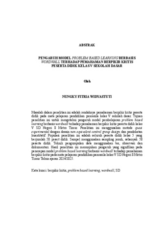 NUNGKY, FITRIA WIDYASTUTI (2025) PENGARUH MODEL PROBLEM BASED LEARNING BERBASIS WORDWALL TERHADAP PEMAHAMAN BERPIKIR KRITIS PESERTA DIDIK KELAS V SEKOLAH DASAR. FAKULTAS KEGURUAN DAN ILMU PENDIDIKAN, UNIVERSITAS LAMPUNG.