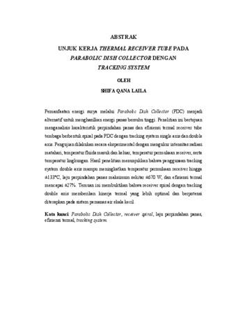 SHIFA, QANA LAILA (2026) UNJUK KERJA THERMAL RECEIVER TUBE PADA PARABOLIC DISH COLLECTOR DENGAN TRACKING SYSTEM. FAKULTAS TEKNIK, UNIVERSITAS LAMPUNG.