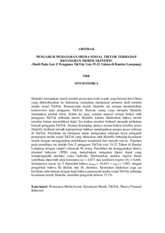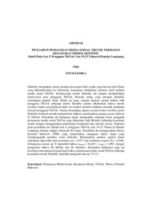 SITI, HANDIKA (2025) PENGARUH PEMASARAN MEDIA SOSIAL TIKTOK TERHADAP KESADARAN MEREK SKINTIFIC (Studi pada Gen Z Pengguna TikTok Usia 19-23 Tahun di Bandar Lampung). FAKULTAS ILMU SOSIAL DAN ILMU POLITIK , UNIVERSITAS LAMPUNG.