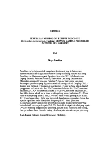Nesya , Presiliya (2026) PERUBAHAN MORFOLOGI RUMPUT PAKCHONG (Pennisetum purpureum cv. Thailand) SEBAGAI DAMPAK PEMBERIAN ZAT MUTAGEN KOLKISIN. FAKULTAS PERTANIAN, UNIVERSITAS LAMPUNG.
