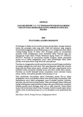 PUAN, NABILA AZAHRA MAHARANI (2026) ANALISIS PRINSIP NON-USE TERHADAP PENGHAPUSAN MEREK PADA PUTUSAN MAHKAMAH AGUNG NOMOR 655 K/PDT.SUSHKI/2023. FAKULTAS HUKUM, UNIVERSITAS LAMPUNG.