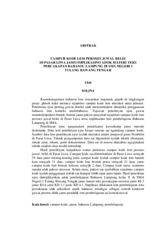 SOLINA, - (2026) CAMPUR KODE LEM PEROSES JUWAL BELEI DI PASAR LIWA JAMO IMPLIKASINO ADOK MATERI TEKS PERCAKAPAN BAHASOU LAMPUNG DI SMA NEGERI 1 TULANG BAWANG TENGAH. FAKULTAS KEGURUAN DAN ILMU PENDIDIKAN, UNIVERSITAS LAMPUNG.