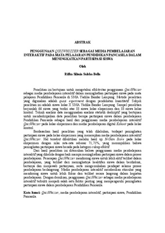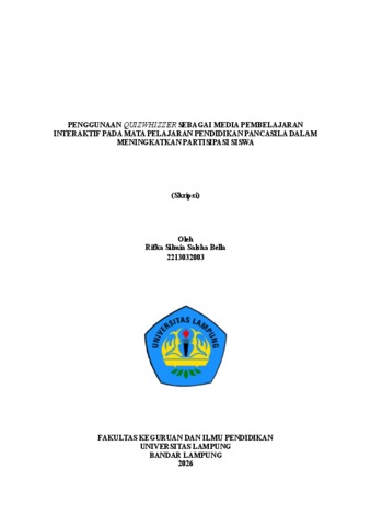 Rifka , Silmia Salsha Bella (2026) PENGGUNAAN QUIZWHIZZER SEBAGAI MEDIA PEMBELAJARAN INTERAKTIF PADA MATA PELAJARAN PENDIDIKAN PANCASILA DALAM MENINGKATKAN PARTISIPASI SISWA. FAKULTAS KEGURUAN DAN ILMU PENDIDIKAN, UNIVERSITAS LAMPUNG.