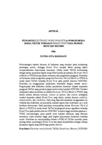 Elvira, Gita Maharani (2026) PENGARUH ELECTRONIC WORD OF MOUTH (e-WOM) DI MEDIA SOSIAL TIKTOK TERHADAP BRAND TRUST PADA PRODUK SKINCARE SKIN1004. FAKULTAS ILMU SOSIAL DAN ILMU POLITIK , UNIVERSITAS LAMPUNG.