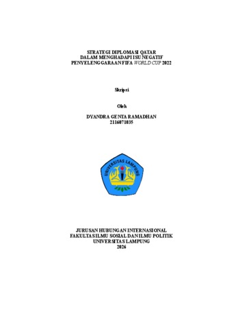 DYANDRA, GENTA RAMADHAN (2026) STRATEGI DIPLOMASI QATAR DALAM MENGHADAPI ISU NEGATIF PENYELENGGARAAN FIFA WORLD CUP 2022. FAKULTAS ILMU SOSIAL DAN ILMU POLITIK , UNIVERSITAS LAMPUNG.