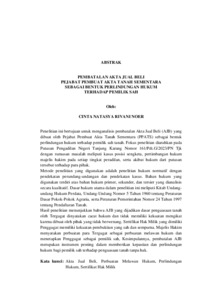 Penelitian ini bertujuan untuk menganalisis pembatalan Akta Jual Beli (AJB) yang dibuat oleh Pejabat Pembuat Akta Tanah Sementara (PPATS) sebagai bentuk perlindungan hukum terhadap pemilik sah tanah. Fokus penelitian diarahkan pada Putusan Pengadilan Negeri Tanjung Karang Nomor 161/Pdt.G/2023/PN Tjk dengan rumusan masalah meliputi kasus posisi sengketa, pertimbangan hukum majelis hakim pada setiap tingkat peradilan, serta akibat hukum dari putusan tersebut terhadap para pihak. Metode penelitian yang digunakan adalah penelitian hukum normatif dengan pendekatan perundang-undangan dan pendekatan kasus. Bahan hukum yang digunakan terdiri atas bahan hukum primer, sekunder, dan tersier yang dianalisis secara kualitatif. Dasar hukum utama dalam penelitian ini meliputi Kitab Undangundang Hukum Perdata, Undang-Undang Nomor 5 Tahun 1960 tentang Peraturan Dasar Pokok-Pokok Agraria, serta Peraturan Pemerintahan Nomor 24 Tahun 1997 tentang Pendaftaran Tanah. Hasil penelitian menunjukkan bahwa AJB yang dijadikan dasar penguasaan tanah oleh Tergugat dinyatakan cacat hukum dan tidak memiliki kekuatan mengikat karena dibuat oleh pihak yang tidak berwenang. Sertifikat Hak Milik yang dimiliki Penggugat memiliki kekuatan pembuktian yang sah dan sempurna. Majelis Hakim menyatakan perbuatan para Tergugat sebagai perbuatan melawan hukum dan menetapkan Penggugat sebagai pemilik sah, Kesimpulannya, pembatalan AJB merupakan instrumen penting dalam memberikan kepastian dan perlindungan hukum bagi pemilik sah terhadap penguasaan tanah tanpa hak. Kata kunci: Akta Jual Beli, Perbuatan Melawan Hukum, Perlindungan Hukum, Sertifikat Hak Milik