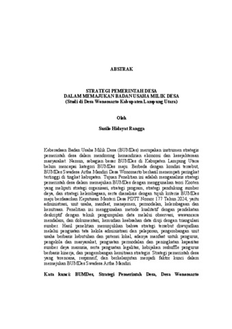 Susilo Hidayat , Rangga (2026) STRATEGI PEMERINTAH DESA DALAM MEMAJUKAN BADAN USAHA MILIK DESA (Studi di Desa Wonomarto Kabupaten Lampung Utara). FAKULTAS ILMU SOSIAL DAN ILMU POLITIK, UNIVERSITAS LAMPUNG.