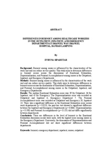 Evryna, Sipahutar (2026) Differences in Burnout among Healthcare Workers in The Outpatient, Inpatient, and Emergency Departments of Imanuel Way Halim Hospital in Bandar Lampung. FAKULTAS KEDOKTERAN , UNIVERSITAS LAMPUNG .