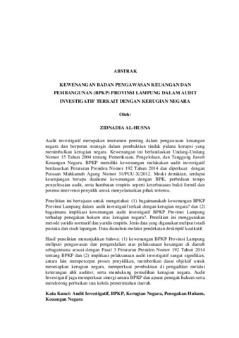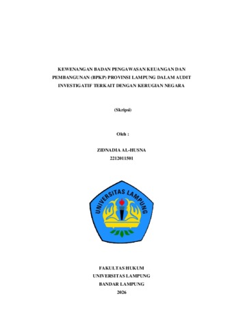 ZIDNADIA AL-HUSNA , HUSNA (2026) KEWENANGAN BADAN PENGAWASAN KEUANGAN DAN PEMBANGUNAN (BPKP) PROVINSI LAMPUNG DALAM AUDIT INVESTIGATIF TERKAIT DENGAN KERUGIAN NEGARA. FAKULTAS HUKUM, UNIVERSITAS LAMPUNG.