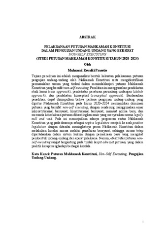 Muhamad Revaldi, Prasetio (2026) Pelaksanaan Putusan Mahkamah Konstitusi dalam Pengujian Undang-Undang yang Bersifat Non-Self Executing (Studi Putusan Mahkamah Konstitusi Tahun 2020-2024). Fakultas Hukum, Universitas Lampung.