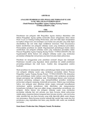 SITI RANI , DANIA (2026) ANALISIS PEMBERIAN IZIN POLIGAMI TERHADAP SUAMI YANG MELAKUKAN PERZI(Studi Putusan Pengadilan Agama Tanjung Karang Nomor: 737/Pdt.G/2024/PA.Tnk) NAHAN. FAKULTAS HUKUM, UNIVERSITAS LAMPUNG.