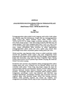 Pertanggungjawaban pidana adalah bentuk tanggung jawab pelaku tindak pidana atas kesalahan yang telah dilakukannya. Dengan kata lain, pertanggungjawaban pidana muncul dari adanya kesalahan seperti dalam Putusan Nomor: 146/Pid.Sus/2025/PN.Tjk dengan sengaja memainkan perjudian online melalui situs website dengan penjara 1 (satu) tahun dengan denda Rp.5000.000 (lima juta rupiah) subsidair 1 (satu) bulan, sedangkan dalam Pasal 27 ayat (2) jo. Pasal 45 ayat (2) UU 19/2016 dengan pidana penjara maksimal 6 tahun dan denda maksimal 1 miliar. Adapun permasalahan dalam penelitian ini adalah bagaimanakah pertanggungjawaban pidana pelaku judi online, apakah yang menjadi dasar pertimbangan hakim dalam menjatuhkan pidana terhadap pelaku judi online. Metode penelitian yang digunakan dalam skripsi ini adalah pendekatan yuridis normatif dan pendekatan yuridis empiris, yang mana menggunakan teknik pengumpulan data dengan studi kepustakaan dan studi lapangan, yang dilengkapi dengan data Narasumber yang terdiri dari Hakim Pengadilan Negeri Tanjung Karang, Jaksa Penuntut Umum Kejaksaan Negeri Bandar Lampung, dan Akademisi Hukum Universitas Lampung. Berdasarkan hasil penelitian yang didapatkan adalah pertanggungjawaban pidana terhadap pelaku judi online, terdakwa Arzy bin Bahrudin terbukti secara sah melakukan tindak pidana “Setiap Orang yang dengan sengaja dan tanpa hak mendistribusikan dan/atau mentransmisikan dan/atau membuat dapat diaksesnya Informasi Elektronik dan/atau Dokumen Elektronik yang memiliki muatan perjudian”. Petimbangan hakim dalam menjatuhkan pidana terhadap Terdakwa menggunakan pertimbangan yuridis yang didasarkan pada fakta-fakta yang terungkap dipersidangan, pertimbangan sosiologis yang menentukan berat atau ringannya pidana yang dijatuhkan dengan melihat latar belakang perbuatan terdakwa, akibat perbuatan terdakwa, dan kondisi diri terdakwa, serta menggunakan pertimbangan filosofis yang bertujuan menjatuhkan pidana kepada terdakwa adalah upaya untuk memperbaiki perilaku terdakwa dalam proses pemidanaan. Aparat penegak hukum diharapkan dalam penanganan tindak pidana perjudian online dapat lebih menitikberatkan pada pemenuhan dan pembuktian unsur pertanggungjawaban pidana pelaku, khususnya terkait perbuatan pidana (actus reus) dan kesalahan (mens rea). Oleh karena itu, diperlukan dukungan sarana pembuktian berbasis digital serta kerja sama dengan penyedia layanan internet dan lembaga perbankan guna menelusuri perbuatan dan sikap batin pelaku dalam melakukan perjudian online. Hakim diharapkan dapat memperkuat pertimbangan yuridis maupun non-yuridis dalam memutus perkara perjudian online, terutama dengan memperhatikan motif, pola keterlibatan, serta tingkat kesadaran pelaku dalam menggunakan sistem digital untuk melakukan perbuatan pidana. Pendekatan ini penting untuk memastikan bahwa putusan yang dijatuhkan tidak hanya memenuhi aspek kepastian hukum, tetapi juga mampu memberikan efek jera yang proporsional terhadap pelaku serta mencegah terulangnya tindak pidana serupa. Kata Kunci: Pertanggungjawaban Pidana, Judi Online, UU ITE.