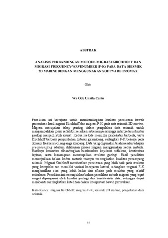 WA ODE, UNZILA CARIN (2026) ANALISIS PERBANDINGAN METODE MIGRASI KIRCHHOFF DAN MIGRASI FREQUENCY-WAVENUMBER (F-K) PADA DATA SEISMIK 2D MARINE DENGAN MENGGUNAKAN SOFTWARE PROMAX. FAKULTAS TEKNIK, UNIVERSITAS LAMPUNG.