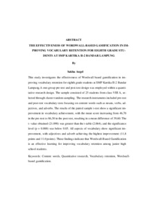 Sakha , Angel (2026) THE EFFECTIVENESS OF WORDWALL-BASED GAMIFICATION IN IMPROVING VOCABULARY RETENTION FOR EIGHTH GRADE STUDENTS AT SMP KARTIKA II-2 BANDAR LAMPUNG. FAKULTAS KEGURUAN DAN ILMU PENDIDIKAN, UNIVERSITAS LAMPUNG.