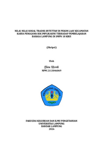 NILAI-NILAI SOSIAL TRADISI BUTETTAH DI PEKON LAAY KECAMATAN KARYA PENGGAWA RIK IMPLIKASINI TERHADAP PEMBELAJARAN BAHASA LAMPUNG DI SMPN 18 KRUI