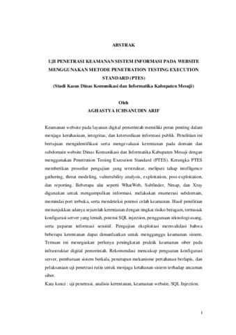 AGHASTYA , ICHSANUDIN ARIF (2025) UJI PENETRASI KEAMANAN SISTEM INFORMASI PADA WEBSITE MENGGUNAKAN METODE PENETRATION TESTING EXECUTION STANDARD (PTES) (Studi Kasus Dinas Komunikasi dan Informatika Kabupaten Mesuji). FAKULTAS TEKNIK , UNIVERSITAS LAMPUNG.