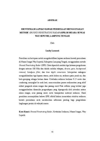 Lucky, Larasati (2026) IDENTIFIKASI LAPISAN BAWAH PERMUKAAN MENGGUNAKAN METODE GROUND PENETRATING RADAR (GPR) DI MUARA SUNGAI WAY SEPUTIH, LAMPUNG TENGAH. FAKULTAS TEKNIK, UNIVERSITAS LAMPUNG.